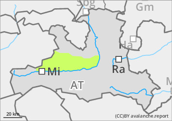Die Lawinengefahr ist gering. Oberhalb von 2000 m können in den Expositionen von West über Nord bis Ost an wenigen Stellen mittlere Schneebrettlawinen insbesondere durch große Zusatzbelastung ausgelöst werden. Solche Gefahrenstellen sind zwar selten aber im Gelände nicht erkennbar. Vorsicht vor allem an den Übergängen von wenig zu mehr Schnee.